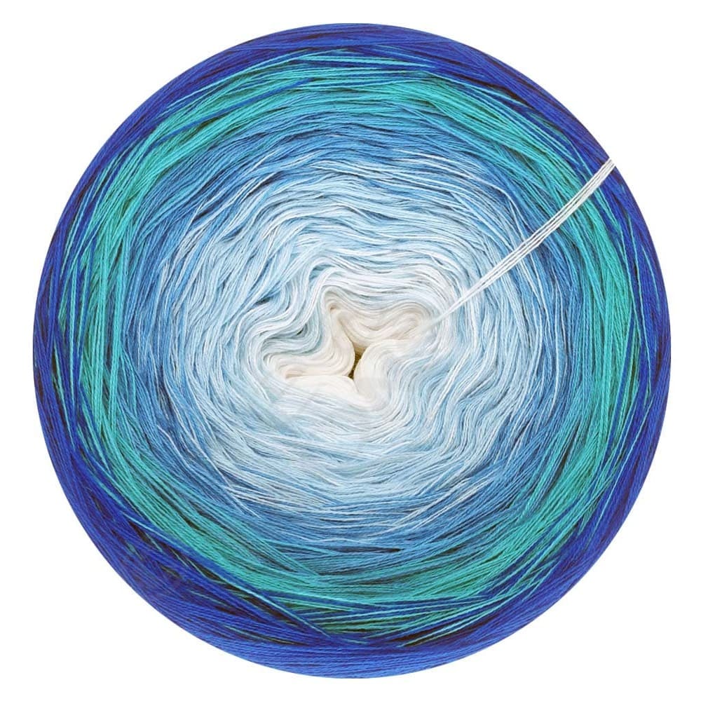 Wintertraum ist wie ein Spaziergang durch frisch gefallenen Schnee – still, friedlich und von einer sanften Eleganz. Zarte helle Töne fließen in kühles Blau über, während grünliche Schattierungen wie gefrorenes Licht zwischen den Fäden aufblitzen. Ein Farbverlauf, der Ruhe schenkt und die klare Schönheit des Winters einfängt – perfekt für kuschelige Projekte mit einem Hauch Magie.